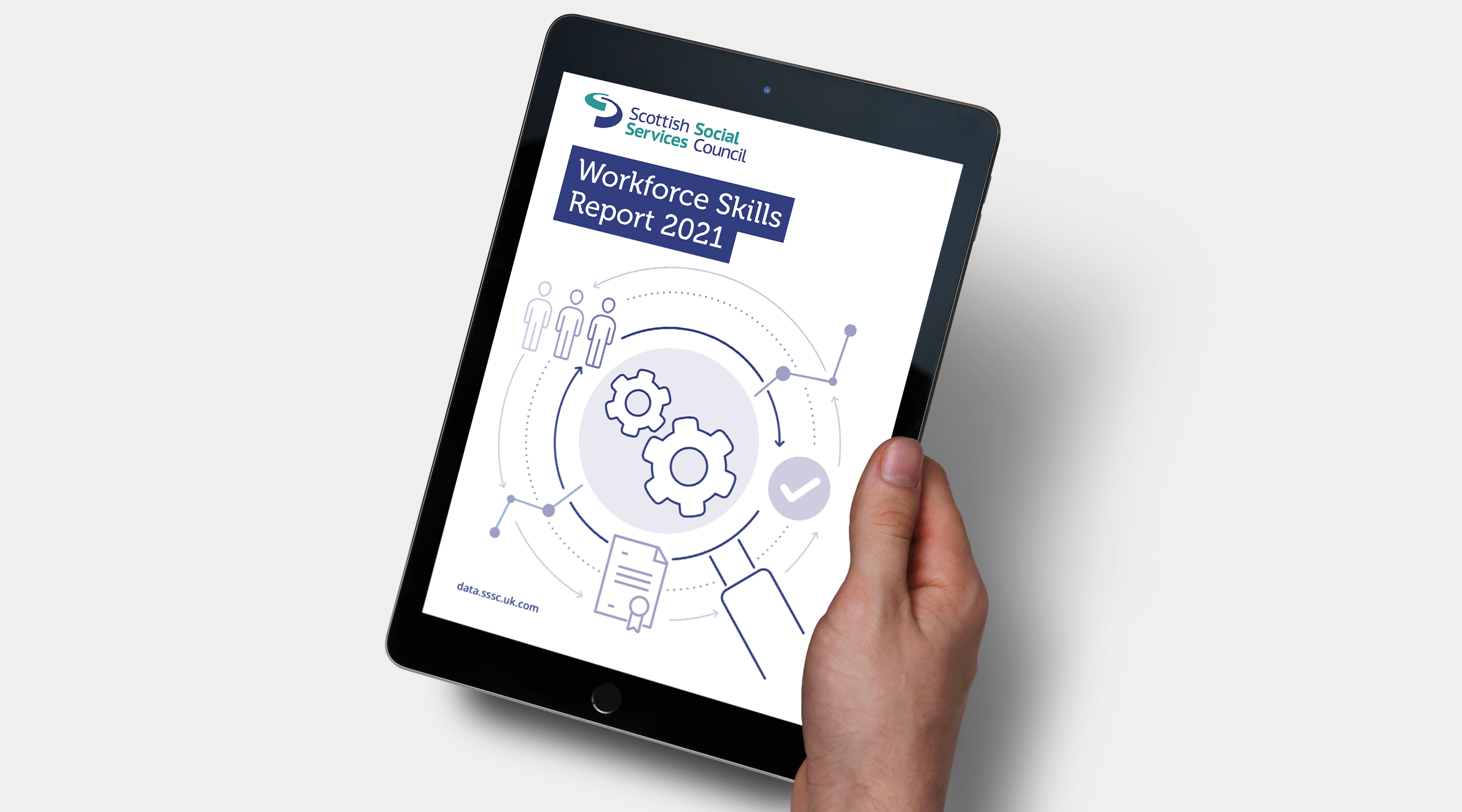 2020 Workforce Data report being read on a tablet device